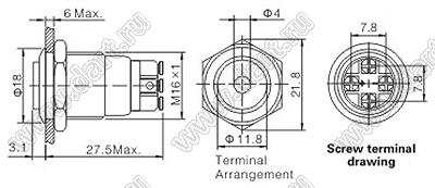 Каталог > Электронные компоненты, радиодетали > Переключатели, кнопки > Переключатели кнопочные (PUSH, кнопки) > Антивандальные кнопки > D=16мм BLGQ16 серия Антивандальные кнопки > BLGQ16H-10D/L/B/12V/S
