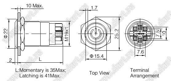 Каталог > Электронные компоненты, радиодетали > Переключатели, кнопки > Переключатели кнопочные (PUSH, кнопки) > Антивандальные кнопки > D=19мм BLAS1 серия Антивандальные кнопки > BLAS1GQ-11ET/L/B/6V/S