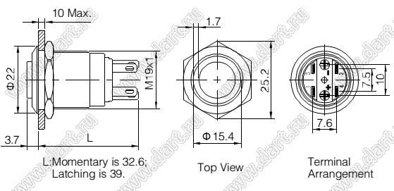 Каталог > Электронные компоненты, радиодетали > Переключатели, кнопки > Переключатели кнопочные (PUSH, кнопки) > Антивандальные кнопки > D=19мм BLAS1 серия Антивандальные кнопки > BLAS1GQH-11E/B/6V/S