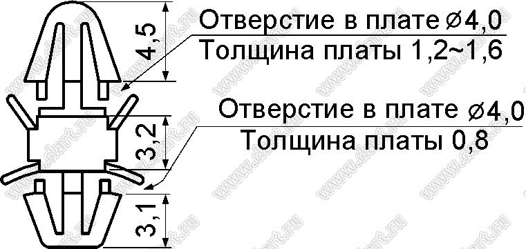 Каталог > Фурнитура для электронных устройств > Фиксаторы плат, стойки межплатные > Фиксаторы под круглое отверстие > Фиксаторы с двумя защелками > Прочие > LCL-3.2