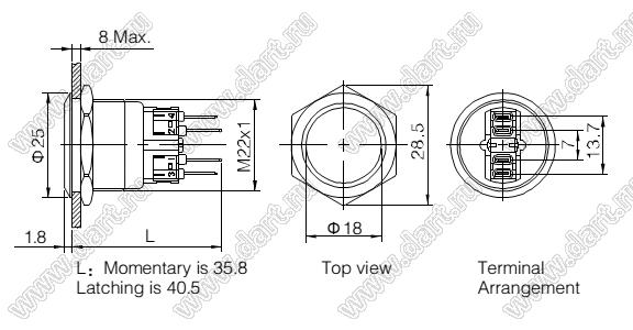 Каталог > Электронные компоненты, радиодетали > Переключатели, кнопки > Переключатели кнопочные (PUSH, кнопки) > Антивандальные кнопки > D=22мм Кнопка антивандальная без подсветки > BLGQ22-11Z/S
