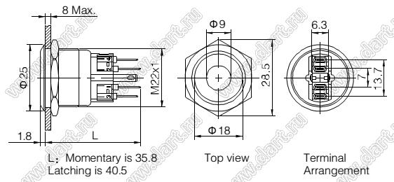 Каталог > Электронные компоненты, радиодетали > Переключатели, кнопки > Переключатели кнопочные (PUSH, кнопки) > Антивандальные кнопки > D=22мм Кнопка антивандальная с подсветкой > BLGQ22-11ZD/G/220V/S