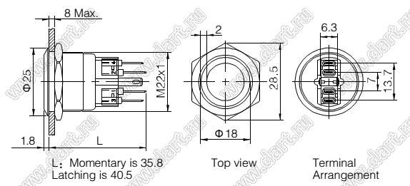 Каталог > Электронные компоненты, радиодетали > Переключатели, кнопки > Переключатели кнопочные (PUSH, кнопки) > Антивандальные кнопки > D=22мм Кнопка антивандальная с подсветкой > BLGQ22-11E/B/6V/S