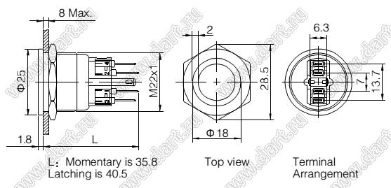 Каталог > Электронные компоненты, радиодетали > Переключатели, кнопки > Переключатели кнопочные (PUSH, кнопки) > Антивандальные кнопки > D=22мм Кнопка антивандальная с подсветкой > BLGQ22PF-11E/B/6V/S