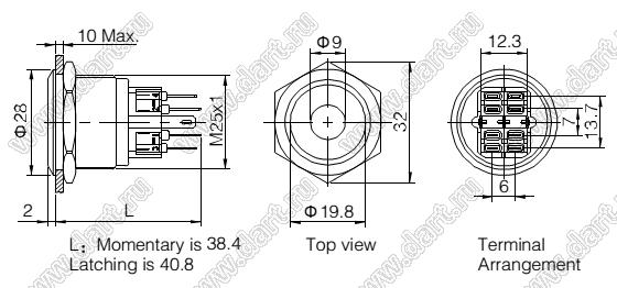 Каталог > Электронные компоненты, радиодетали > Переключатели, кнопки > Переключатели кнопочные (PUSH, кнопки) > Антивандальные кнопки > D=25мм Кнопка антивандальная с подсветкой > BLGQ25-22ZD/R/6V/S