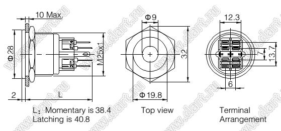 Каталог > Электронные компоненты, радиодетали > Переключатели, кнопки > Переключатели кнопочные (PUSH, кнопки) > Антивандальные кнопки > D=25мм Кнопка антивандальная с подсветкой > BLGQ25PF-22ZD/G/220V/S