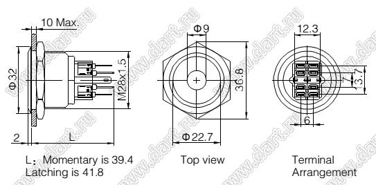 Каталог > Электронные компоненты, радиодетали > Переключатели, кнопки > Переключатели кнопочные (PUSH, кнопки) > Антивандальные кнопки > D=28мм Кнопка антивандальная с подсветкой > BLGQ28-22ZD/G/6V/S