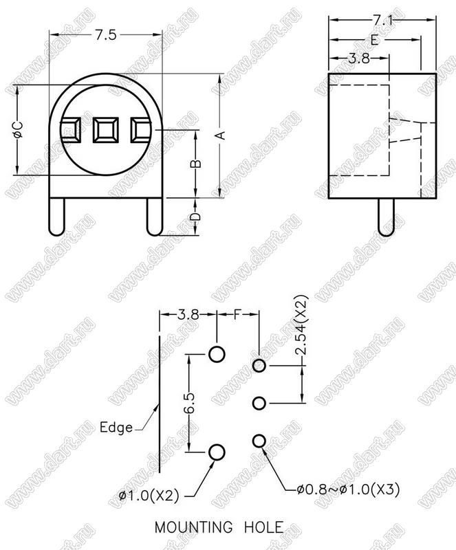 Каталог > Фурнитура для электронных устройств > Держатели и изоляторы компонентов > Держатели светодиодов > Держатели светодиодов угловые на плату > 1 x d=5,0мм > LEK503-7