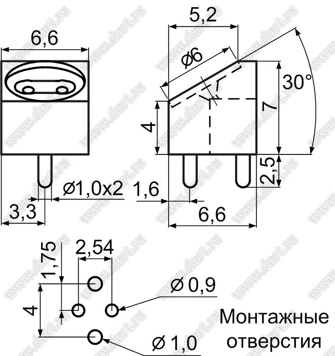 Каталог > Фурнитура для электронных устройств > Держатели и изоляторы компонентов > Держатели светодиодов > Держатели светодиодов наклонные > LEK-513