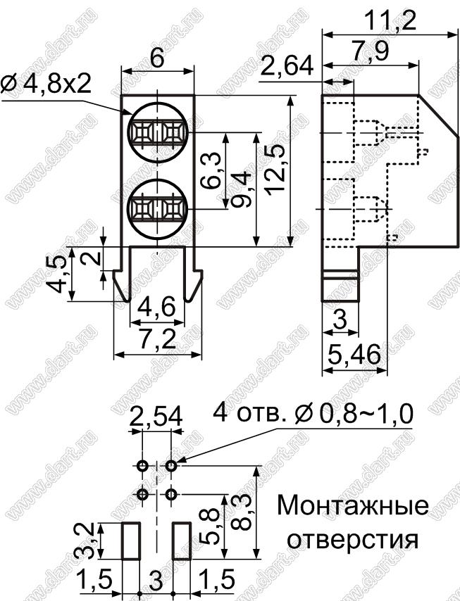Каталог > Фурнитура для электронных устройств > Держатели и изоляторы компонентов > Держатели светодиодов > Держатели светодиодов угловые на плату > 2 x d=5,0мм > LEK-515