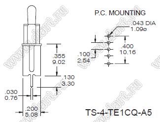 Каталог > Электронные компоненты, радиодетали > Переключатели, кнопки > Переключатели рычажные (тумблеры, TOGGLE) > TS-4, TS-5 Переключатели рычажные сверхминиатюрные > TS-4-TE1CQ-A5