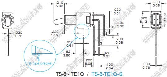 Каталог > Электронные компоненты, радиодетали > Переключатели, кнопки > Переключатели рычажные (тумблеры, TOGGLE) > TS-6, TS-7, TS-8, TS-9 Переключатели рычажные сверхминиатюрные > TS-8A-TE1Q