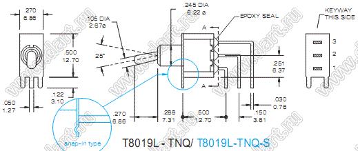 Каталог > Электронные компоненты, радиодетали > Переключатели, кнопки > Переключатели рычажные (тумблеры, TOGGLE) > T80-T Переключатели рычажные миниатюрные угловые > T8020L-TNQ