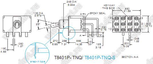 Каталог > Электронные компоненты, радиодетали > Переключатели, кнопки > Переключатели рычажные (тумблеры, TOGGLE) > T80-T Переключатели рычажные миниатюрные угловые > T8403P-TNQ