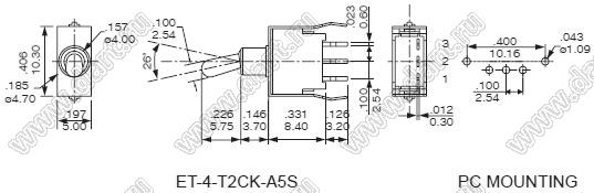 Каталог > Электронные компоненты, радиодетали > Переключатели, кнопки > Переключатели рычажные (тумблеры, TOGGLE) > ES30-T Сверхминиатюрные рычажные переключатели (моющиеся) > ET-4I-T2CK-A5S