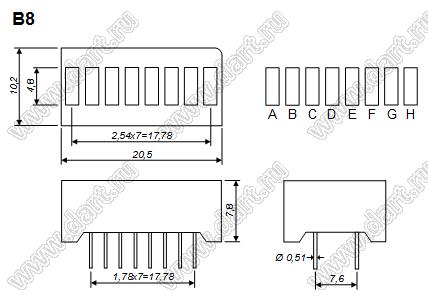 Каталог > Оптоэлектроника и индикация > Индикаторы светодиодные (сегментные дисплеи, матрицы, шкалы, светящиеся поля) > Шкалы cветодиодные > BR-B8A