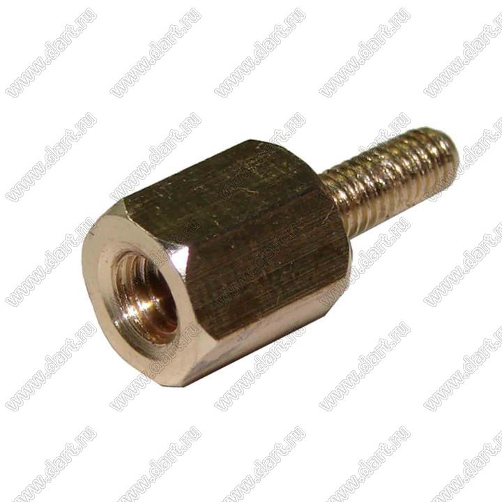 Стойка шестигранная с внутренней и наружной резьбами; с внутренней резьбой М4x0,7; с внешней резьбой М3x0,5; резьба внутр. M4x0,7; резьба внешн. M3x0,5; SW=6,0мм; L=8,0мм; L2=6,0мм; L3=6,0мм; латунь