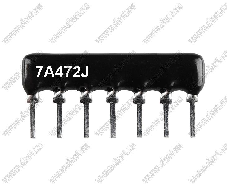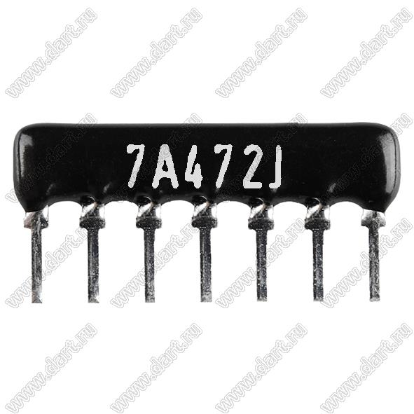 Каталог > Электронные компоненты, радиодетали > Резисторы > Резисторы постоянные > Резисторы DIP (выводные) > Резисторы SIP (сборки резисторные) > Тип A сборки резисторные > схема 7P6R > SIP 7P6R-A4K7J 5% (7A472J)