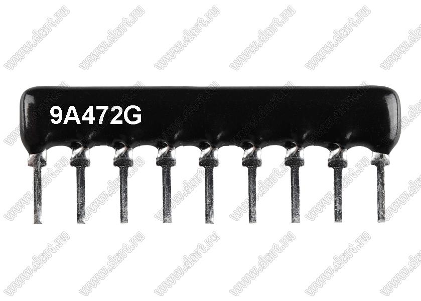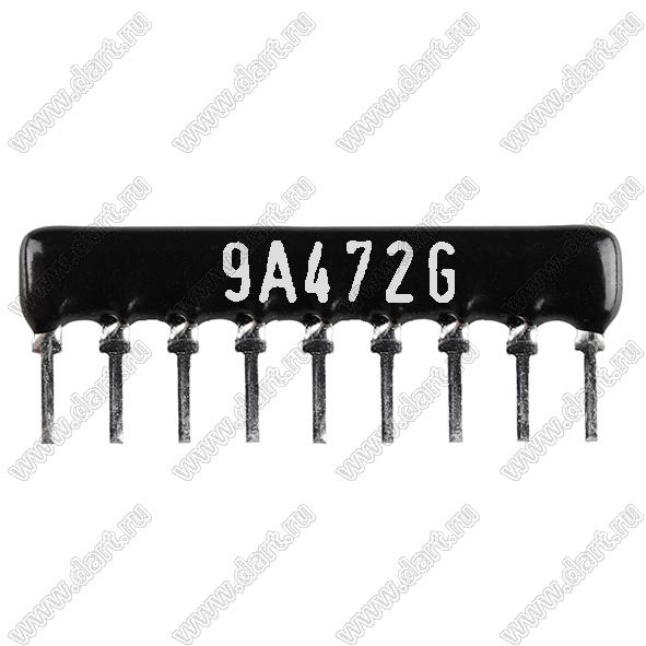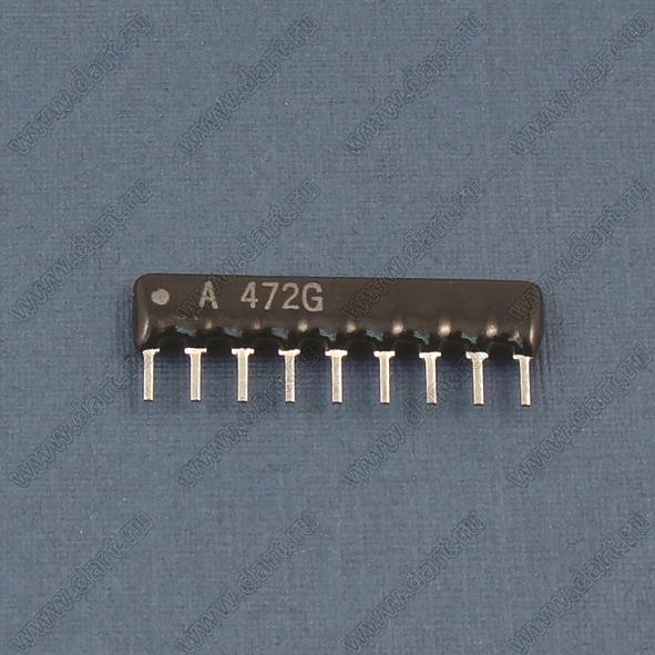 Каталог > Электронные компоненты, радиодетали > Резисторы > Резисторы постоянные > Резисторы DIP (выводные) > Резисторы SIP (сборки резисторные) > Тип A сборки резисторные > схема 9P8R > SIP 9P8R-A4K7 2% (9A472G)