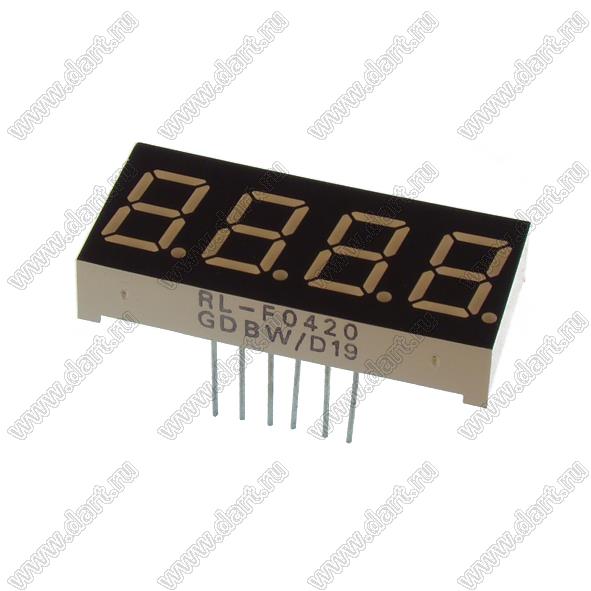 Каталог > Оптоэлектроника и индикация > Индикаторы светодиодные (сегментные дисплеи, матрицы, шкалы, светящиеся поля) > Цифровые и цифро-буквенные cветодиодные сегментные индикаторы (дисплеи) > 4-разрядные сегментные индикаторы > RL-F0420GDBW/D15