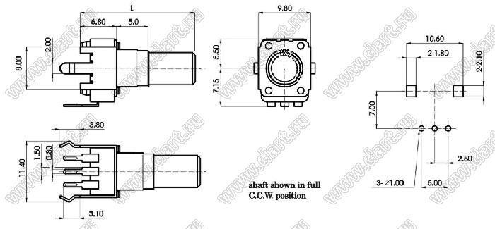 Каталог > Электронные компоненты, радиодетали > Резисторы > Резисторы переменные (потенциометры) > Роторные > 9 мм > R0905N-ZD1-B203 (R0936N-B20K)