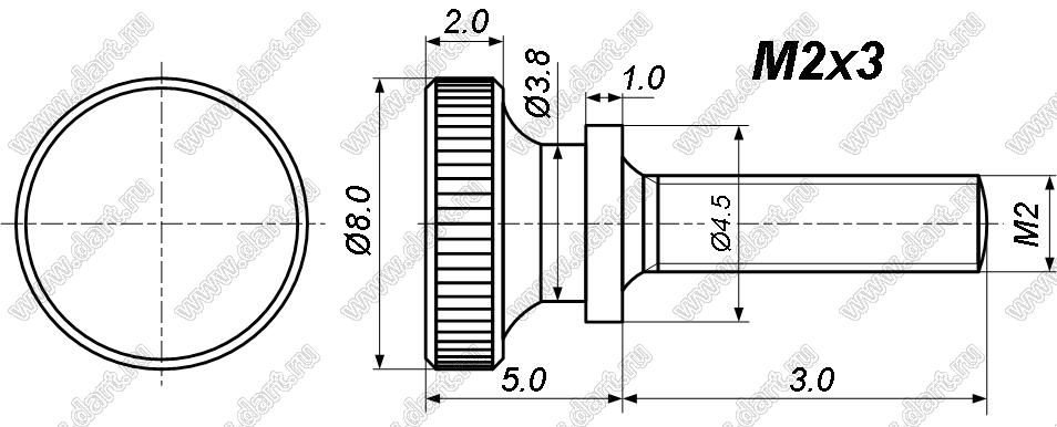 Каталог > Фурнитура для электронных устройств > Крепеж металлический (метизы) и пластиковый > Винты металлические > Винты регулировочные с фигурной накатной головкой по GB834 > BLSNH-020030N