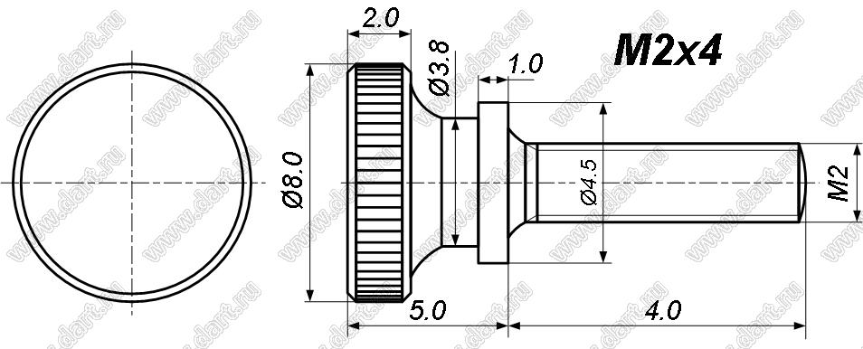Каталог > Фурнитура для электронных устройств > Крепеж металлический (метизы) и пластиковый > Винты металлические > Винты регулировочные с фигурной накатной головкой по GB834 > BLSNH-020040N
