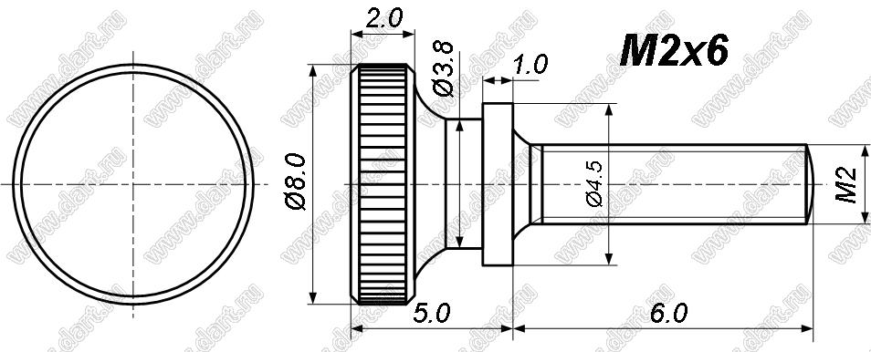 Каталог > Фурнитура для электронных устройств > Крепеж металлический (метизы) и пластиковый > Винты металлические > Винты регулировочные с фигурной накатной головкой по GB834 > BLSNH-020060N