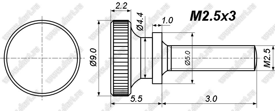 Каталог > Фурнитура для электронных устройств > Крепеж металлический (метизы) и пластиковый > Винты металлические > Винты регулировочные с фигурной накатной головкой по GB834 > BLSNH-025030N