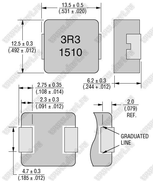 Каталог > Электронные компоненты, радиодетали > Дроссели > Дроссели экранированные для поверхностного (SMD) монтажа > SRP1265A серия (12,5х12,5х6,2 мм) > SRP1265A-1R5M
