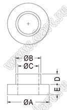 TW-292 втулка изолирующая для транзистора; A=5,5мм; B=3,5мм; C=3,0мм; D=2,6мм; E=0,6мм; PBT; натуральный, черный   TW-292
