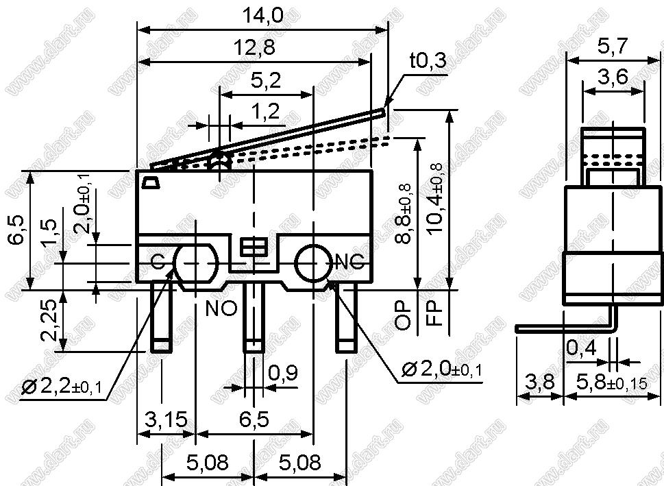 Каталог > Электронные компоненты, радиодетали > Переключатели, кнопки > Переключатели концевые/микропереключатели (MICRO) > DM > DM1-01C-30 (WK01-01)3A