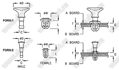 фиксатор платы; ØA=7,8мм; нейлон-66 (UL) + полиуретан PU (UL); черный