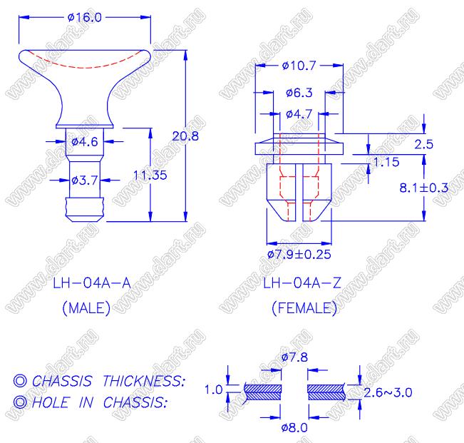 Размер G: 2,6~3,0 мм