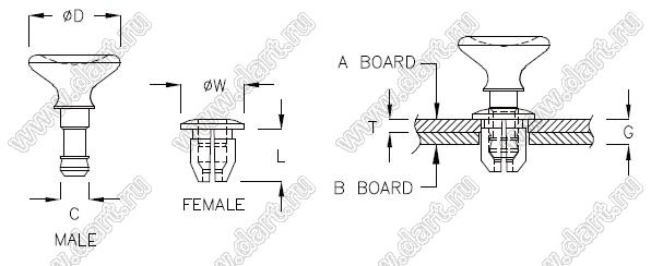 фиксатор платы; ØA=7,5мм; нейлон-66 (UL) + полиуретан PU (UL); черный