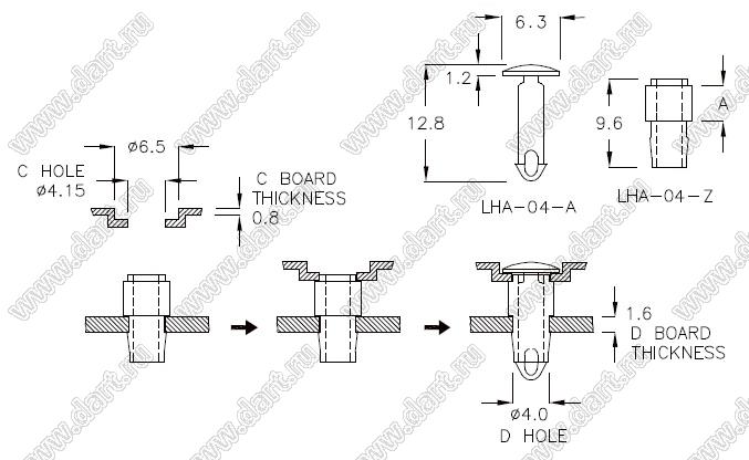 фиксатор платы; нейлон-66 (UL); черный