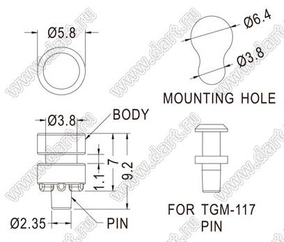 Каталог > Фурнитура для электронных устройств > Амортизаторы > Монтажные амортизаторы для жестких дисков > TGM серия, со штифтом > TGM-117