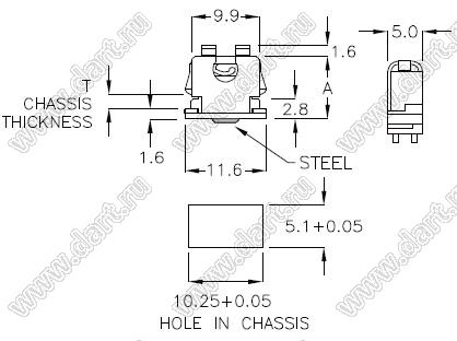 Толщина платы T: 2,0 мм