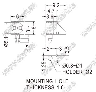 Каталог > Фурнитура для электронных устройств > Держатели и изоляторы компонентов > Держатели светодиодов > Держатели светодиодов угловые на плату > 1 x d=5,0мм > LEK-548