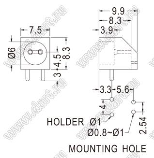Каталог > Фурнитура для электронных устройств > Держатели и изоляторы компонентов > Держатели светодиодов > Держатели светодиодов угловые на плату > 1 x d=5,0мм > LEK-535