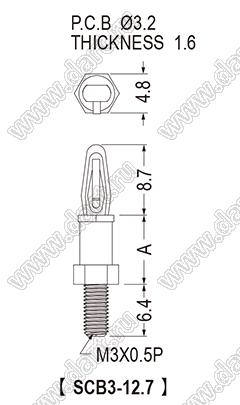 Каталог > Фурнитура для электронных устройств > Фиксаторы плат, стойки межплатные > Фиксаторы под круглое отверстие > Фиксаторы с защелкой в плату > SCB серия > SCB3-12.7