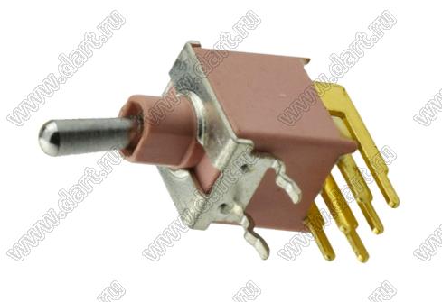 Переключатель рычажный (тумблер); DPDT; угловой; ON-(ON); герметичный IP67; длм=ина токателя=8,13мм; толкатель=медный сплав хромированный