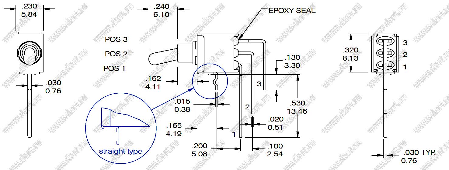 Каталог > Электронные компоненты, радиодетали > Переключатели, кнопки > Переключатели рычажные (тумблеры, TOGGLE) > E40 Переключатели рычажные герметичные > ES-8 серия микропереключателей > ES-8H-P21R-S-H (SPDT)