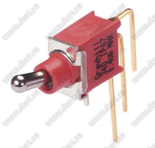 Переключатель рычажный (тумблер); SPDT; угловой; (ON)-OFF-(ON); герметичный IP67; длм=ина токателя=6,10мм; толкатель=пластик белый