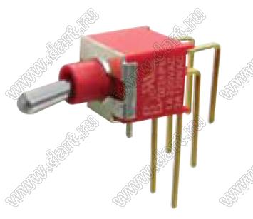 Переключатель рычажный (тумблер); DPDT; угловой; ON-ON; герметичный IP67; длм=ина токателя=10,16мм; толкатель=медный сплав хромированный
