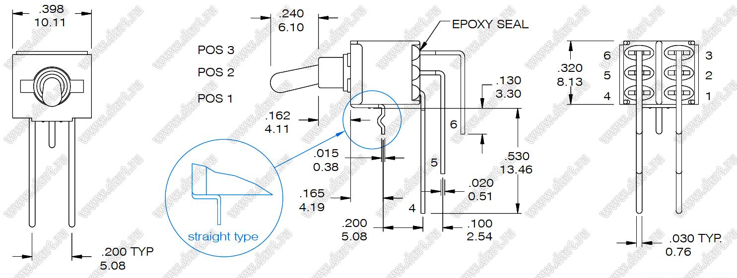 Каталог > Электронные компоненты, радиодетали > Переключатели, кнопки > Переключатели рычажные (тумблеры, TOGGLE) > E40 Переключатели рычажные герметичные > ES-9 серия микропереключателей > ES-9H-T2R-S-H (DPDT)