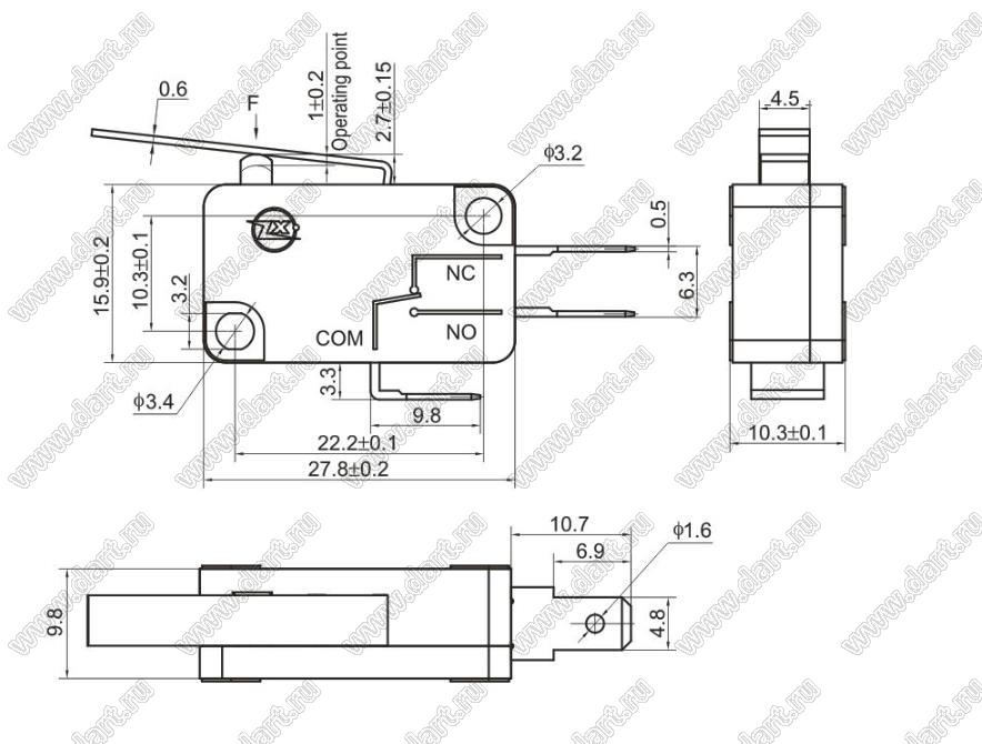 Каталог > Электронные компоненты, радиодетали > Переключатели, кнопки > Переключатели концевые/микропереключатели (MICRO) > VM (KW11-7) > KW11-7-1B11DB34B (VM3-12N-150)