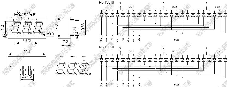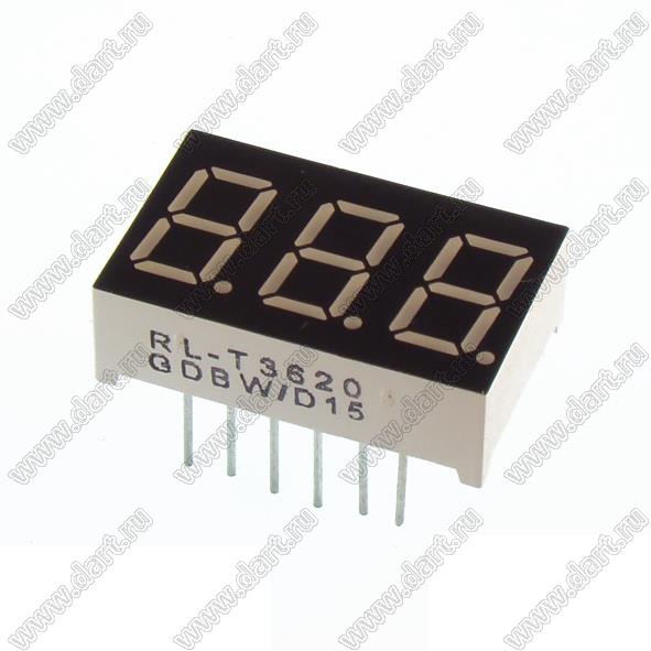 Каталог > Оптоэлектроника и индикация > Индикаторы светодиодные (сегментные дисплеи, матрицы, шкалы, светящиеся поля) > Цифровые и цифро-буквенные cветодиодные сегментные индикаторы (дисплеи) > 3-разрядные 7-сегментные индикаторы > 3-разр. 0.31 дюйм. 7-сегм. 3311 серия > RL-T3620GDBW
