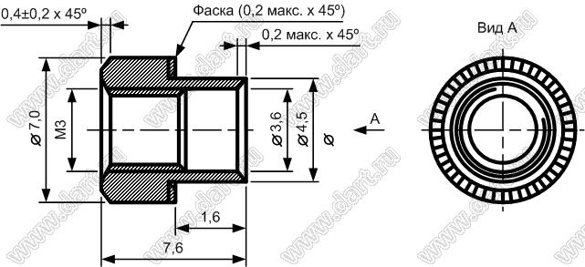 Каталог > Фурнитура для электронных устройств > Крепеж металлический (метизы) и пластиковый > Втулки резьбовые развальцовочные (бонки) > Втулки резьбовые развальцовочные (бонки) M3 > BONR-М3D7H6Z-009