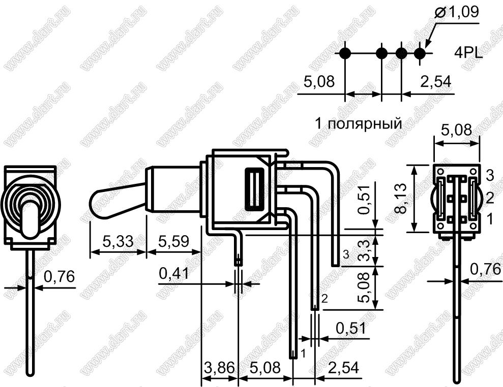 Каталог > Электронные компоненты, радиодетали > Переключатели, кнопки > Переключатели рычажные (тумблеры, TOGGLE) > TS-6, TS-7, TS-8, TS-9 Переключатели рычажные сверхминиатюрные > TS-8-SEQE-H (TS-41L, 2MS1T1B1M7QES)